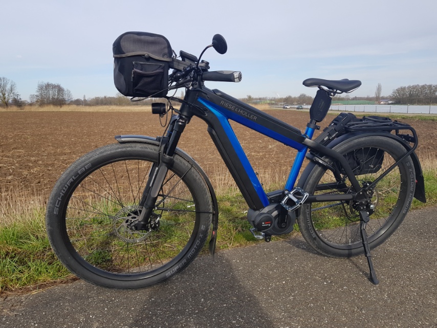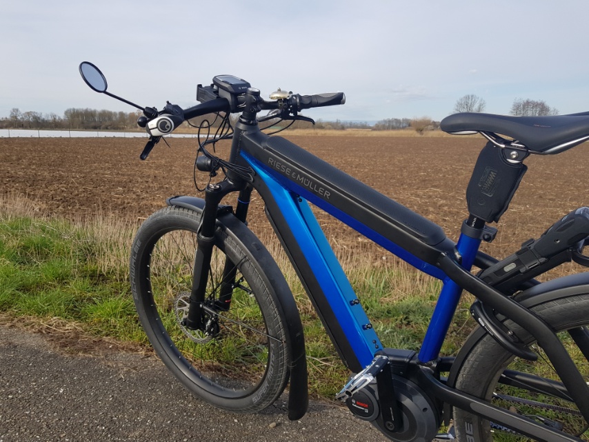 Cet épisode étant passé, j'ai acquis de la maison allemande Riese & Müller le Supercharger GX Rohloff avec courroie Gates et Dual 1000 Wh à deux batteries intégrées au châssis et amovibles. Le SC GX a le moteur Bosch Performance CX qui assiste jusqu'à 25 km/h mais qui développe 75 Nm à la demande, au lieu des 60 Nm de la version à 45 km/h. Il a eu le Design & Innovation Award 2018, mais pour moi il ma rappelle le design de la Chaise en bleu de Gerrit Rietveld.