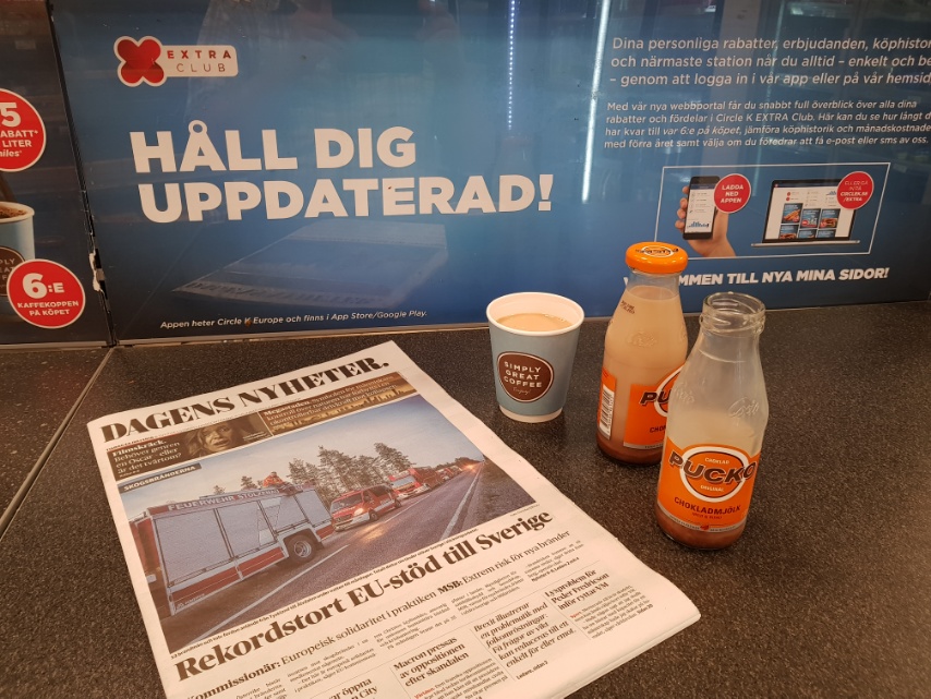 Dans une station d'essence j'ai expliqué au pompiste: "Jag är stolt över att vara Europeisk. Denna hjälp till Sverige undervisar alla att Europa är nödvändigt. Det här är europeisk solidaritet i praktiken."